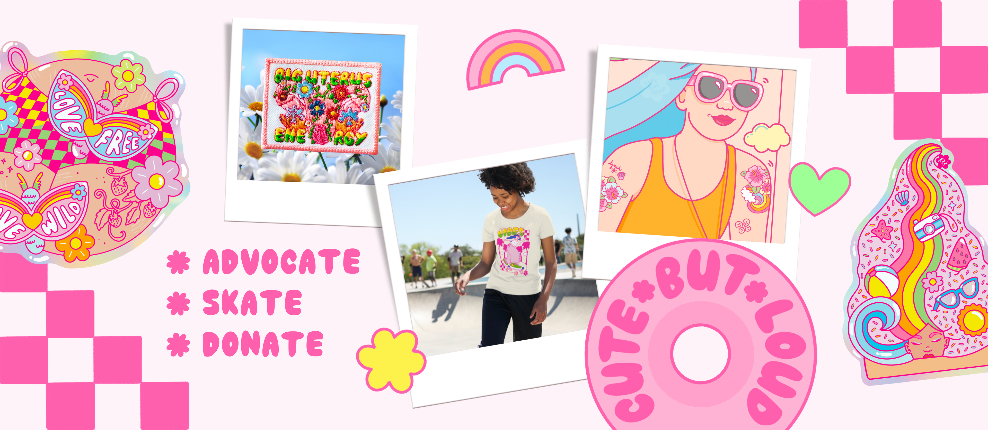 Cute But Loud is a space dedicated to inclusion and accessibility. Started in 2024 by Becca Flowers (she/her). A single mom, caring for her kiddos, and their cats, Coco and Marshmallow. You guessed it, they are the super cuddly Yin and Yang in our lives. This business has been daydreamed about since I was in the seventh grade. All the cool “guy” skaters had oversized skate shirts, shoulder length hair, and really awesome baggy pants. I loved it, and I wanted to be a part of it. But the Summer I got curvy, my shirts didn’t hang flat anymore. My mom convinced me that skate apparel wasn’t for my body type, and made me get a bra. But now that I’m all grown up I have zero f**ks about other people deciding how I show up in the world. I returned to my passion for the world of skateboarding. Focusing on how I and others can fit into our passions if they are inclusive and accessible. I can’t emphasize enough, “These spaces are for everyone.”